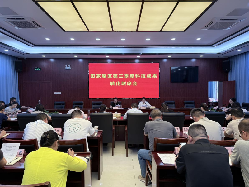 7月30日下午,田家庵区第三季度科技成果转化联席会议在区机关第九会议室召开。会议总结了上半年全区科技成果转化工作推进情况,就科技创新引领产业升级、深化部门协同机制、优化企业服务等重点工作展开深入交流,副区长缪国鹏出席会议并讲话。联席会议成员单位,各乡镇、街道,两园区负责同志参加会议。